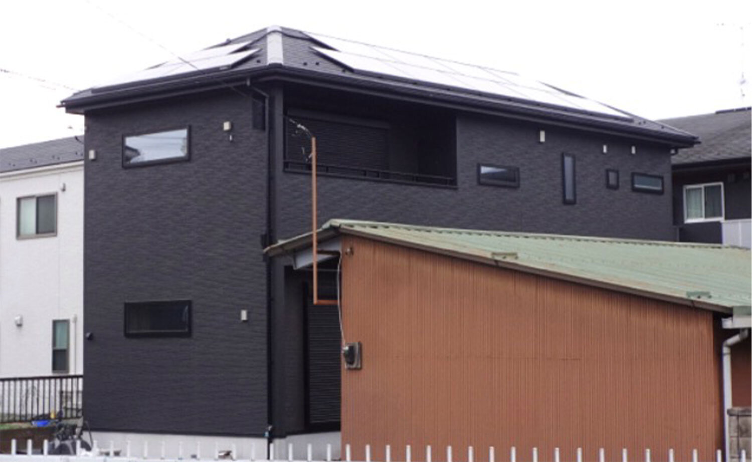 3~4人家族の電力需要に合わせ、4~5kWの太陽光パネルと9.7kWの蓄電池を選定。「将来性」と「美観」にこだわり、EV購入を見据えて拡張性の高いニチコン製の「トライブリッド蓄電システム®」を採用しました。住宅用太陽光発電と家庭用蓄電池、V2Hの3機器を1台のパワーコンディショナで一元管理できる製品です。また、ハウスメーカー様や電気工事業者様と綿密に連携し、建築段階から配線ルートを確保。新築の美しい外観を損なわない施工を実現しました。