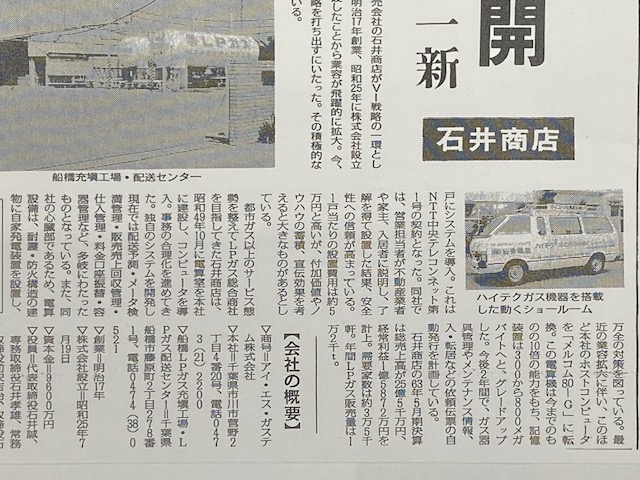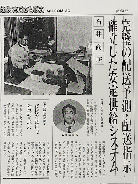 顧客件数が飛躍的に伸び、伝票の手書きは限界を迎えていた。この頃より事務の改善を進めながら機械化の検討を始め、コンピューターシステムの導入を決定。配送予測や配送指示業務もシステム化され、配送能率が格段に向上した。その他にも、機器販売、配管工事、灯油卸なども含めた販売管理は手書きとコンピューターの併用で行った。